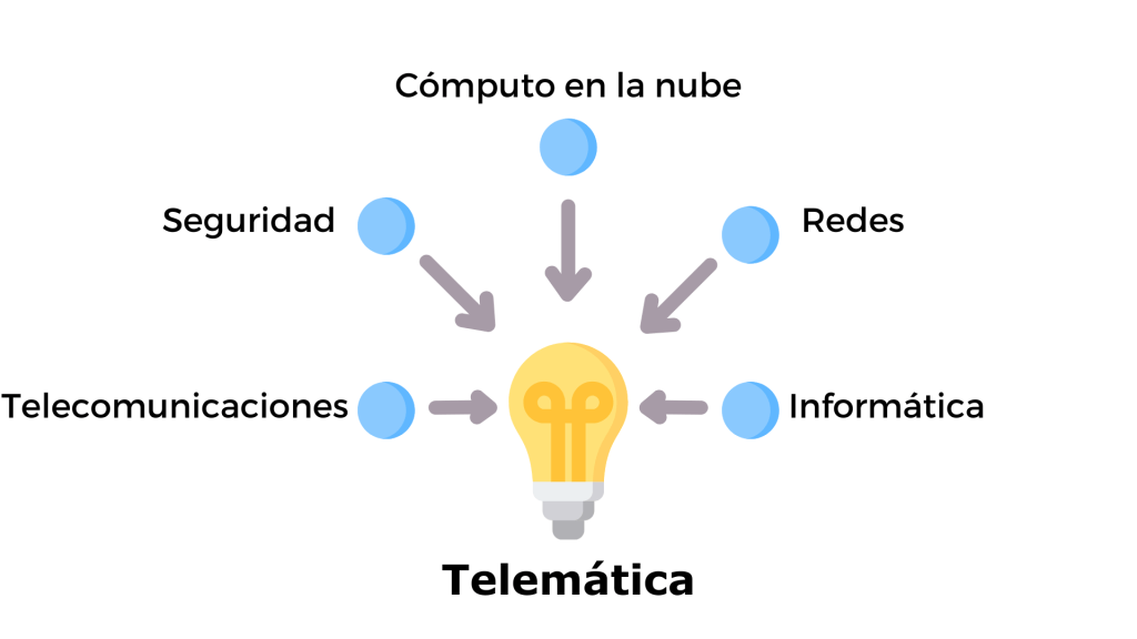 Pero el concepto de telemática en el año 2024 contempla más que telecomunicaciones e informática, involucra redes informáticas, seguridad de la información y cómputo en la nube, y todo lo relacionado para tener acceso a los sistemas de información no importando donde estén las personas. Y a esas ramas de la ingeniería se le agrega ahora la inteligencia artificial.